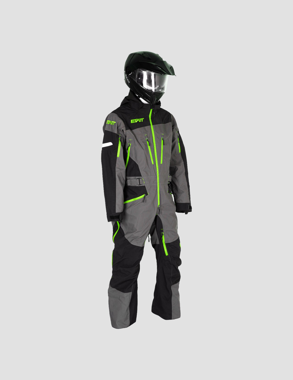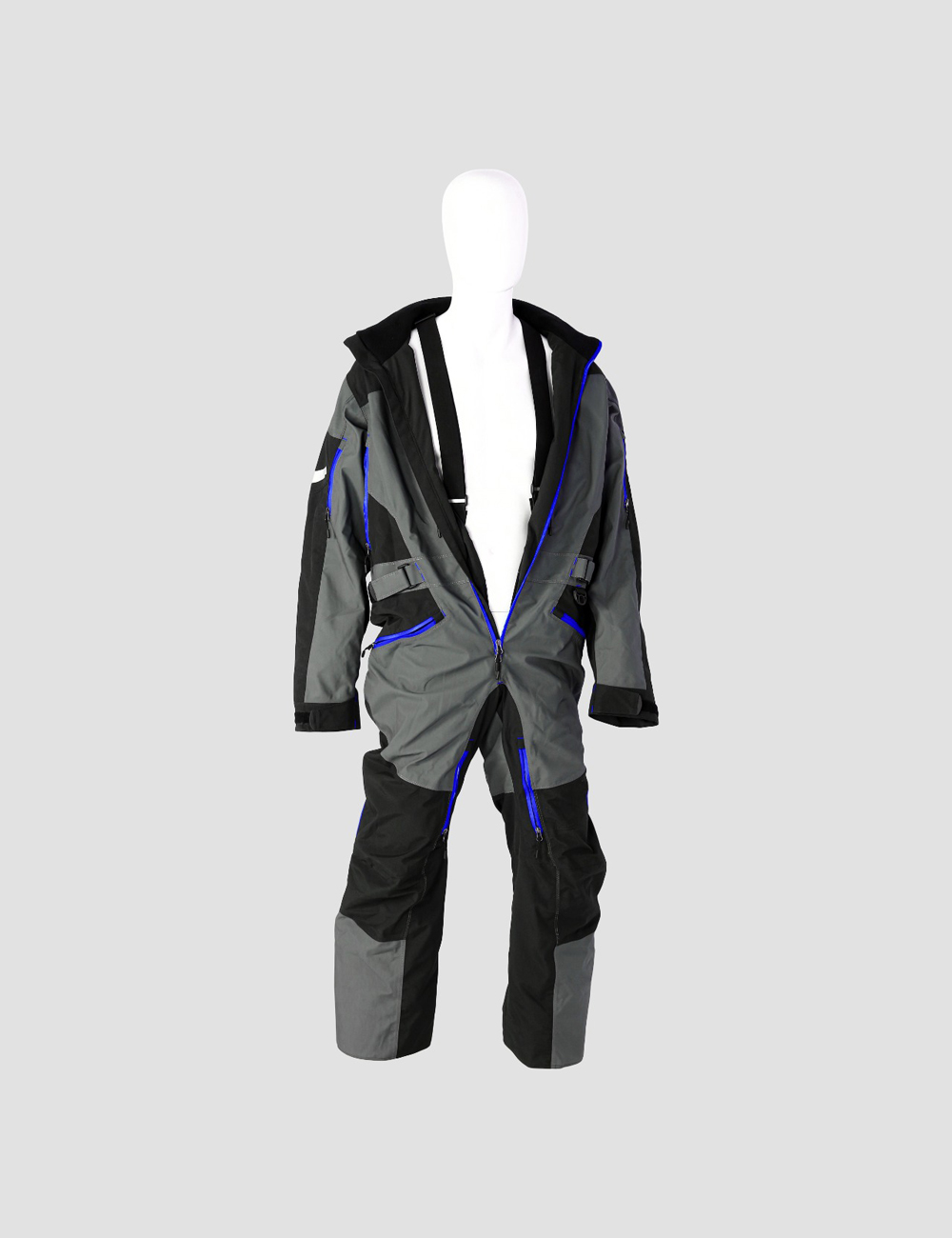 This Epic 1pc Suit is made from durable, three-layer, 30k 30k fabric. It has a removable hood with YKK water resistant aqua guard zippers. It has air vents with Snow Frog mesh at shoulder, legs, and under arm. Cuffs are also snow proof. Pockets are located on chest, left arm, and two at the pant. This suit has snow gators at the ankle with Velcro and snaps. There is also a side adjustment with belt. All seams are sealed with a heavy duty tape. Lining is in black mesh. Colors are fully customizable and Removable Suspenders.