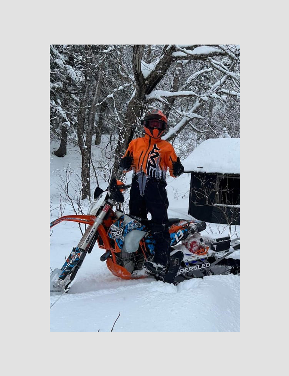 This Elevation X suit is made from durable, three layer, 30k 30k fabric. It has a removable hood with YKK water resistant aqua guard zippers. It has air vents with Snow Frog mesh at shoulder, legs, and under arm. Cuffs are also snow proof. Pockets are located on chest, left arm, and two at the pant. This suit has snow gators at the ankle with Velcro and snaps. There is also a side adjustment with belt. All seams are sealed with a heavy duty tape. Lining is in black mesh. Colors are fully customizable and Removable Suspenders.