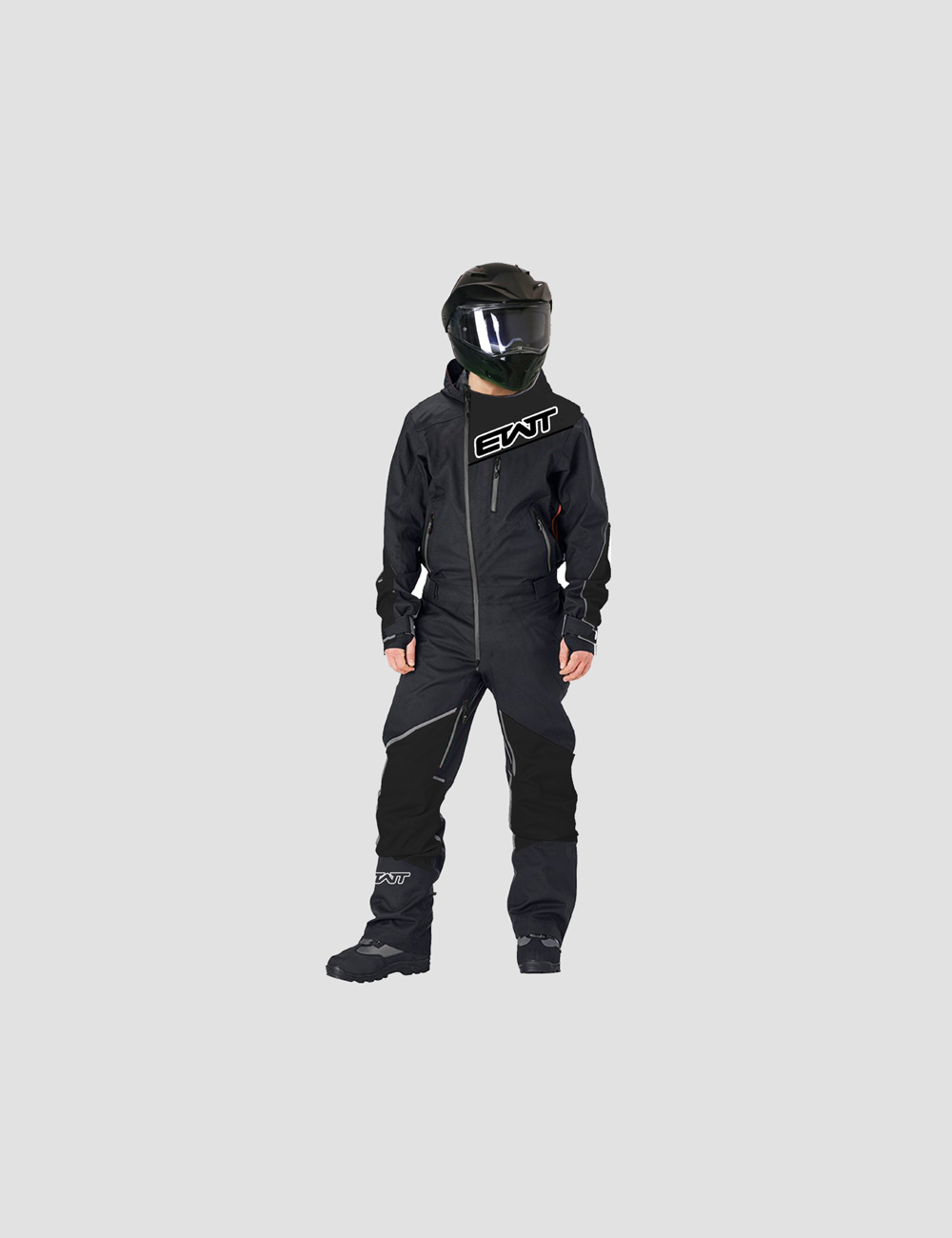 This Redemption Onesie Suit is made from durable, three-layer, 30k 30k fabric. It has a removable hood with YKK water resistant aqua guard zippers. It has air vents with Snow Frog mesh at shoulder, legs, and under arm. Cuffs are also snow proof. Pockets are located on chest, left arm, and two at the pant. This suit has snow gators at the ankle with Velcro and snaps. There is also a side adjustment with belt. All seams are sealed with a heavy duty tape. Lining is in black mesh. Colors are fully customizable and Removable Suspenders.
