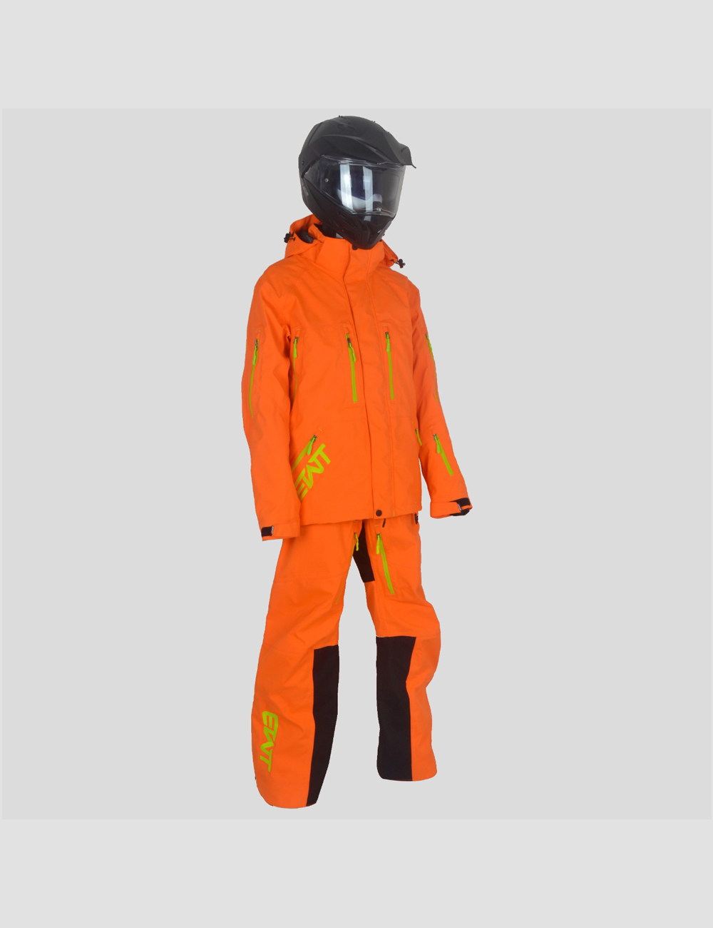 This Snowbike Epic 2PC Suit is made from durable, three-layer, 30k 30k fabric. It has a removable hood with YKK water resistant aqua guard zippers. It has air vents with Snow Frog mesh at shoulder, legs, and under arm. Cuffs are also snow proof. Pockets are located on chest, left arm, and two at the pant. This suit has snow gators at the ankle with Velcro and snaps. There is also a side adjustment with belt. All seams are sealed with a heavy duty tape. Lining is in black mesh. Colors are fully customizable and Removable Suspenders.