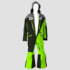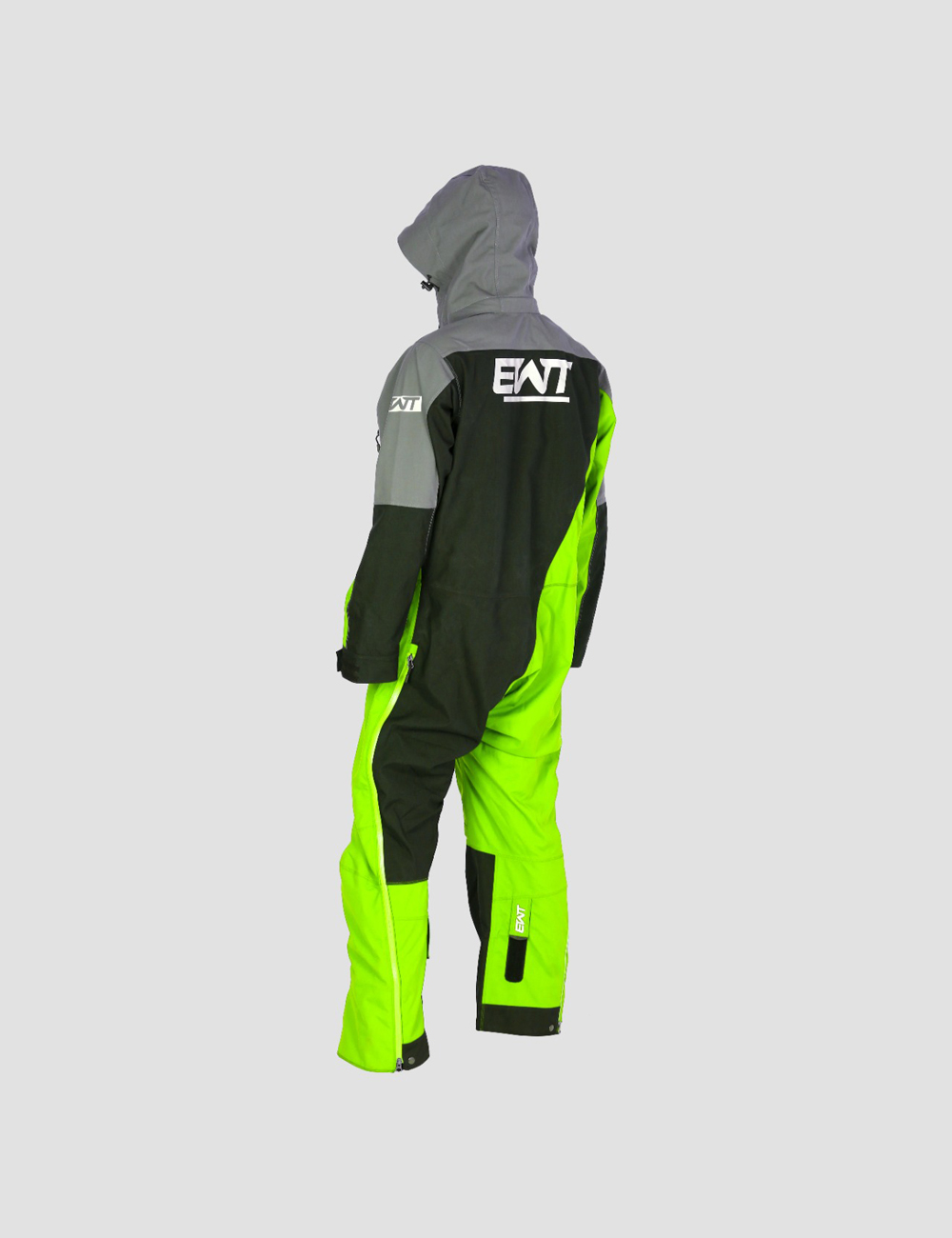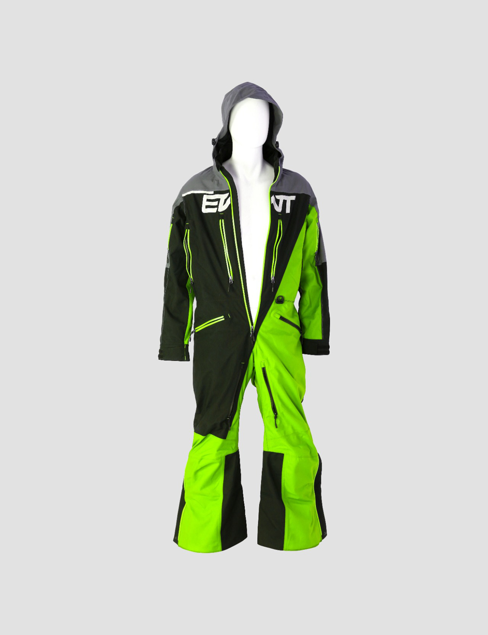 Tämä yksiosainen Snowbike Light -puku on valmistettu kestävästä, kolmikerroksisesta 30k 30k-kankaasta. Siinä on irrotettava huppu, jossa on YKK vedenpitävät vesisuojavetoketjut. Siinä on tuuletusaukot Snow Frog -verkolla olkapäässä, jaloissa ja käsivarren alla. Hihansuut ovat myös lumenpitäviä. Taskut sijaitsevat rinnassa, vasemmassa käsivarressa ja kaksi taskua housuissa. Tässä puvussa on lumisuojat nilkassa tarranauhalla ja neppareilla. Sivussa on myös säätö hihnalla. Kaikki saumat on tiivistetty vahvalla teipillä. Vuori on mustaa verkkoa. Värit ovat täysin muokattavissa ja irrotettavat henkselit.